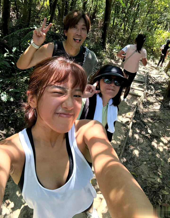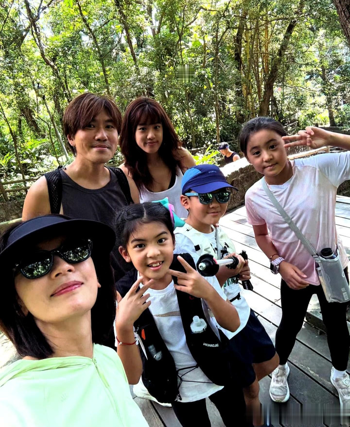 10月6日,贾静雯社交平台晒近况。中秋假期,贾静雯携女儿们去登山了。