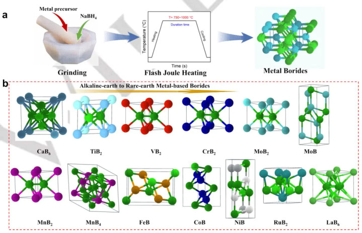 过渡金属硼化物,如硼化铁(FeB)、硼化钴(CoB)、硼化镍(NiB)、二硼化钒(VB2)和二硼化钼(MoB2),因其高熔点、高硬度、热稳定性、耐磨性、耐腐蚀性和化学稳定性等难熔特性,在恶劣电化学环境中具有应用潜力。富硼金属硼化物由于存在强共价硼-硼网络,显示出良好的化学稳定性。